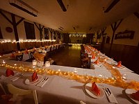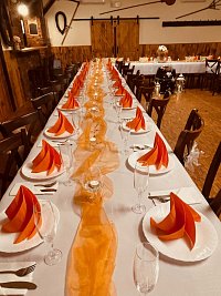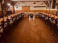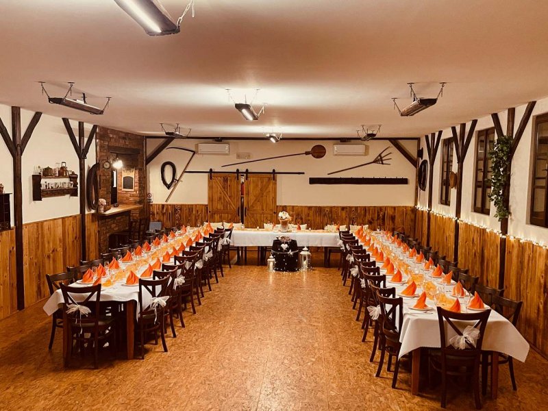 Sál má k dispozici plně vybavenou kuchyň s bílým nádobím, sklenicemi a půllitry pro 70 osob, mikrovlnné trouby, ledničku, chladící vitríny pro jídlo a nápoje, výčepní zařízení a další nezbytné věci pro vaši akci. K dipozici je i venkovní hřiště, které může sloužit jak sportovním aktivitám, tak i ke svatebním obřadům. K tomuto účelu máme k dispozici i velký party stan, výzdobu pro svatby, pivní sety, ohniště, kotlíky na vaření guláše a další.