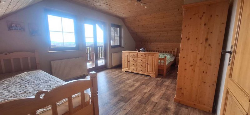 Příjemný srub pro ideálně 8 osob se nachází v krásném prostředí malebné vesnice Petrovičky. Klasický masivní srub splňuje současné nejnáročnější požadavky na pohodlnou rekreaci. V přízemí najdete hlavní místnost s krbovými kamny, kuchyň, koupelnu se záchodem, zádveří a předsíň se srubovým schodištěm. V patře se nachází 2 ložnice. Objekt má instalované krbové a elektrické vytápění. Srub má velkou terasu s krásným výhledem na Stolové a Orlické hory.