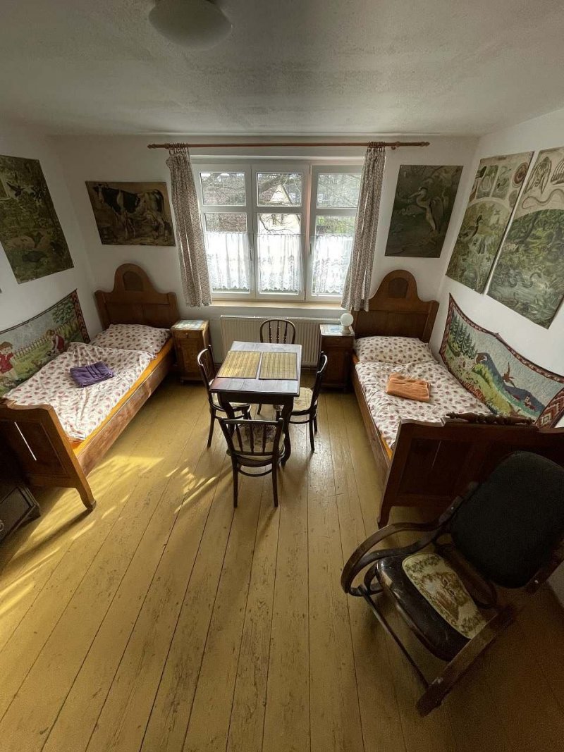 Originální a prostorná chalupa na prahu magické České Kanady kousek od Jindřichova Hradce. Je to původně stará vesnická škola, ideální pro skupiny 10 - 16,max. 20osob. Pět samostatných pokojů, každý s koupelnou a toaletou. Velká společenská místnost s vybavenou kuchyní a kulečníkem v přízemí, prostorná zastřešená veranda, zahrada s potokem. Perfektní koupání v místní pískovně, zároveň kousek od údolí Hamerského potoka. V krásné vesnici s hospodou, velkým hřištěm, farmou s možností ježdění na koni a cykloservisem. Výlety pěšky nebo na kolech. 3 km od Jindřichova Hradce, kde je veškerá vybavenost i kulturní vyžití.