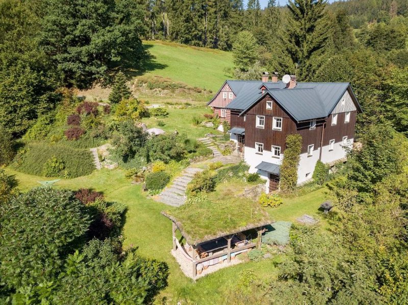 Chalupa v obci Jablonec nad Jizerou: 4 ložnice, max. 12 osob. Orientační cena (chalupa za noc): celoročně 11.000kč.