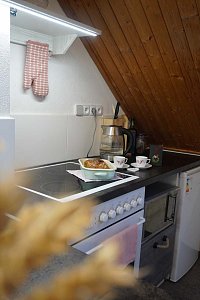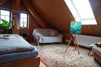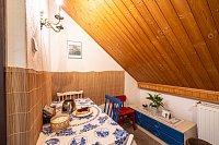 Pojďte si užít klidnou dovolenou v útulném podkrovním apartmánu na statku v Křenovicích. K dispozici Vám je vybavená kuchyňka s jídelním koutem, dva pokoje s manželskými postelemi a koupelna. Uzavřený dvůr je vhodný k odpočinku i hraní her. Můžete využít posezení v altánu nebo si na dvorku zahrát ping pong či využít společenskou místnost s kulečníkem.