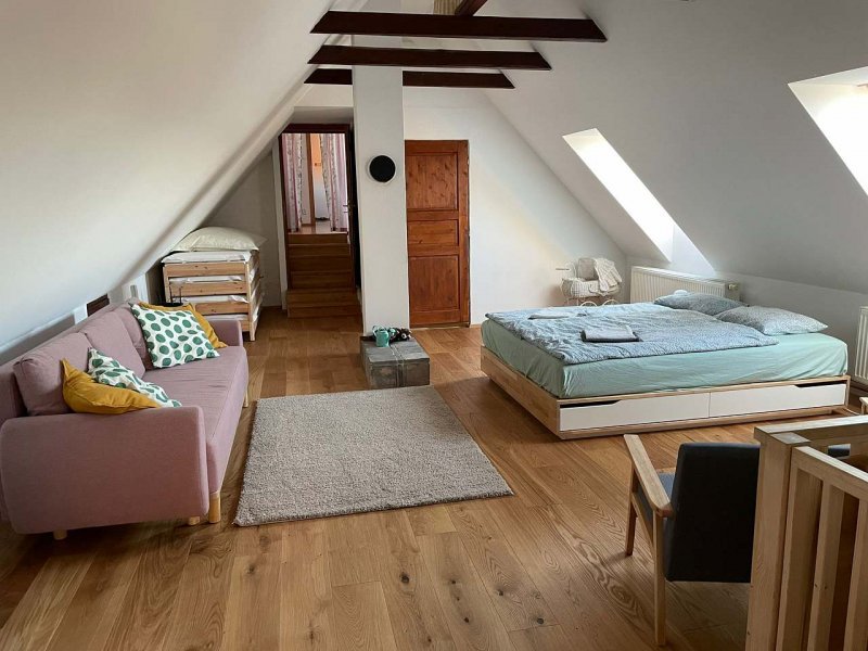 Vítejte u nás doma! Ubytování na statku, které nabízíme, jsou součástí domu, který využívá i naše rodina. Snažíme se vybudovat místo, kde najdete soukromí a klid pro odpočinek. Velká oplocená zahrada s biobazénem a výhledem na pastvinu s koni. Gril, ohniště, venkovní posezení pod pergolou, trampolína a stolní tenis nejen pro děti. Přátelská atmosféra. Skvělé výlety po okolí.