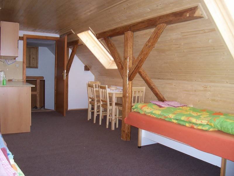 Apartmán v obci Dlouhá Ves u Ktové: 3 ložnice, max. 6 osob. Orientační cena (za apartmán za týden): léto 40.000kč, zima 36.000kč.
