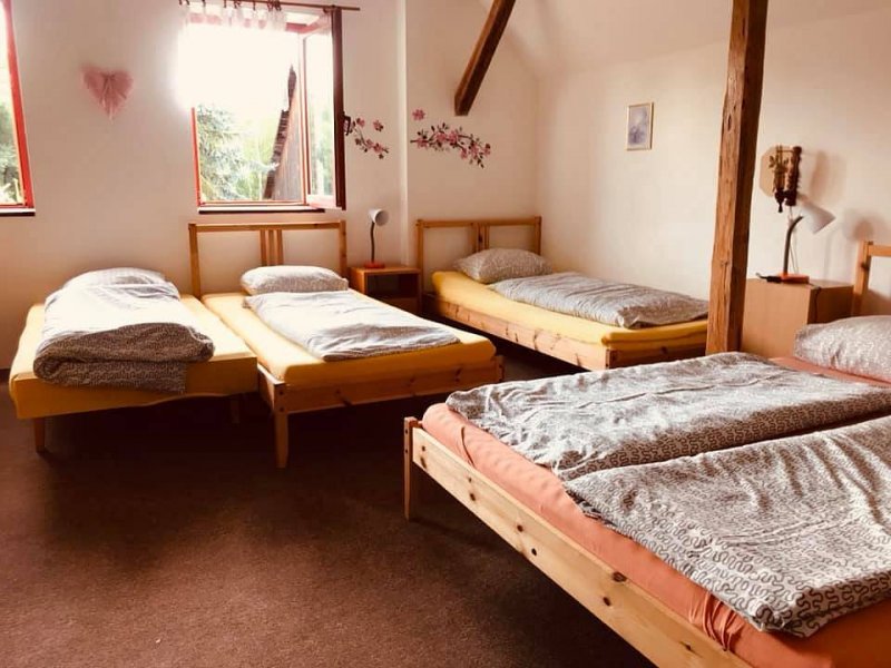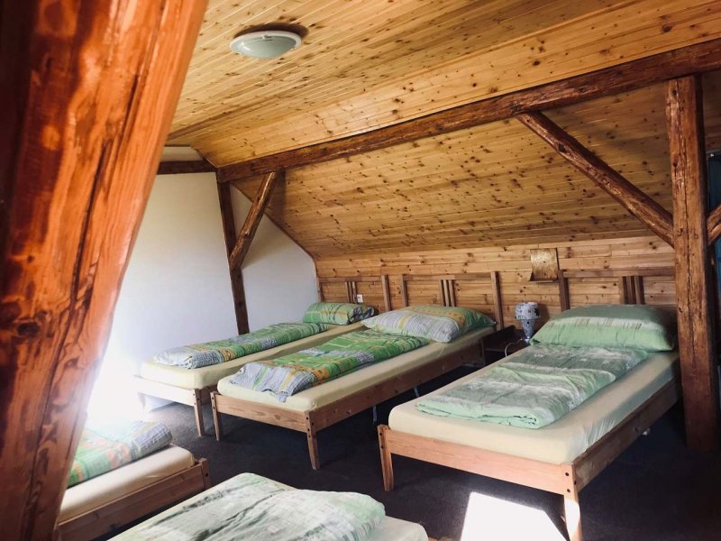 Apartmán v obci Ktová: 9 ložnic, max. 45 osob. Orientační cena (za osobu za noc): léto 510kč.