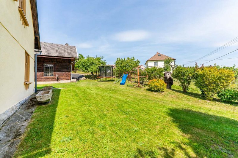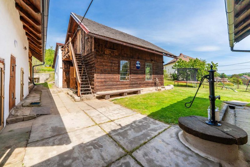 Kolem chalupy se nachází zahrada, která je dokola oplocena. Do zahrady je vjezd L a P branou. Vozidla se dají zaparkovat přímo na travnaté ploše za branou, vejde se sem pohodlně až 6 vozidel. V případě více vozidel doporučuji je nechat na náměstíčku 2min pěšky (vzdálenost 200 m). Stání před domem u cesty je majetkem sousedního domu, to prosím nevyužívat. Na zahradě se nachází několik herních prvků pro ty menší, jako je trampolína, klouzačka, kolotoč koule, houpačky, malý plastový bazének. Na dvoře je funkční pumpa s pitnou vodou nebo pro ranní zchlazení. Dá se využít i venkovní sprcha.