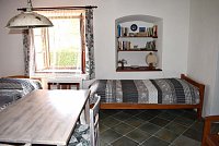 Upozorňuji, že ubytování je v areálu trvale obydleného hospodářství , kde se nachází k tomu potřebné vybavení (cirkulárka, kosa aj. ), ve výběhu bývají koně, jistě se potkáte s našimi dvěma kocourky. Ubytování tedy není vhodné pro malé děti ca do 7 let věku, z důvodu možného úrazu. Pobyt s malými dětmi proto doporučuji předem konzultovat s majitelkou.