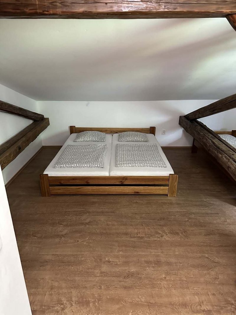 Srub v obci Vyšehorky: 3 ložnice, celkem pro 2 až 10 osob. Orientační cena (srub za týden): celoročně 21.500kč.