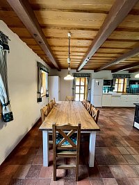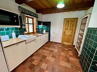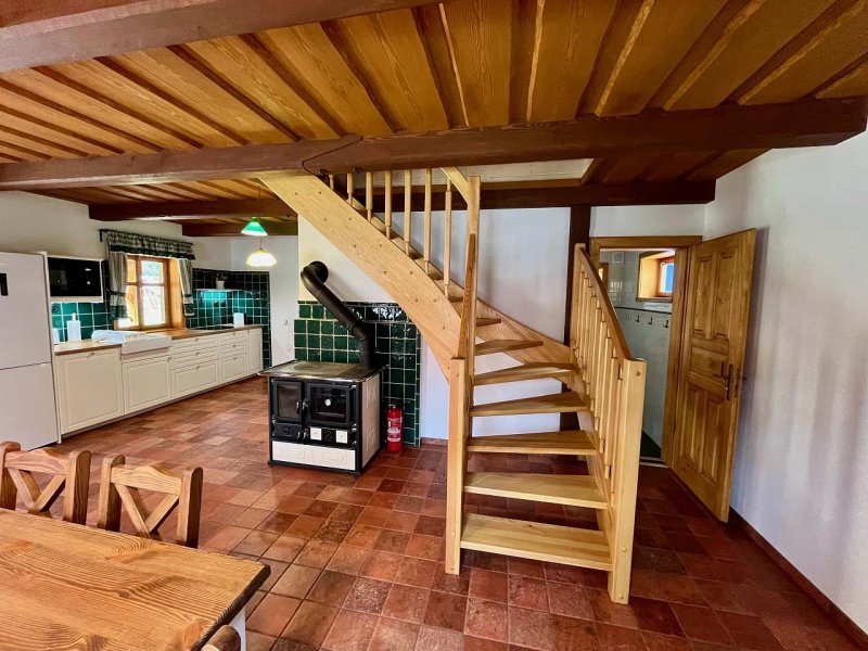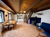 Chalupa je koncipována do třech nezávisle na sobě fungujících apartmánů: Červený, Žlutý a Modrý apartmán. Každý apartmán má k dispozici obytný prostor s kuchyňským koutem vybaveným vařičem, mikrovlnnou troubou, rychlovarnou konvicí a dřezem. Samozřejmostí je nádobí pro cca. 6 osob. Pro spaní je určen prostor v podkroví, kde je připraveno 6 lůžek. Čtvrtý Zelený apartmán je situován v druhé budově.