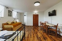 Apartmán v obci Stožec: 2 ložnice, celkem pro 2 až 8 osob. Orientační cena (za apartmán za noc): léto 1.600kč, zima 1.300kč.