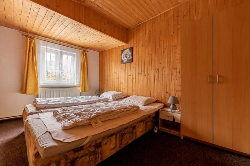 Apartmán v obci Černý Důl: 5 ložnic, celkem pro 18 až 25 osob. Orientační cena (za apartmán za týden): léto 13.993kč, zima 27.993kč.