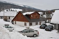 Chalupa v obci Černý Důl: 5 ložnic, celkem pro 2 až 12 osob. Orientační cena (chalupa za týden): léto 16.000kč, zima 24.000kč.