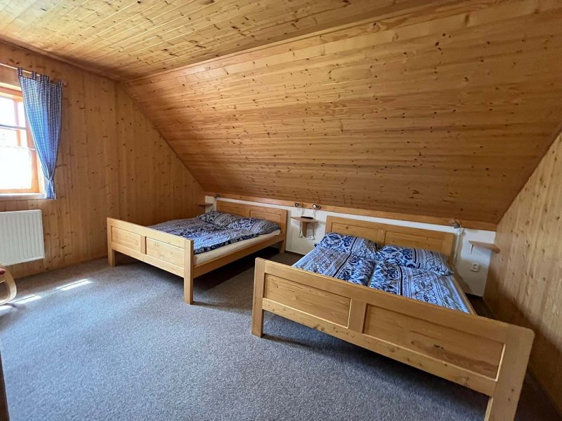 Srub v obci Suchá Rudná: 4 ložnice, max. 11 osob. Orientační cena (srub za noc): celoročně 5.500kč.