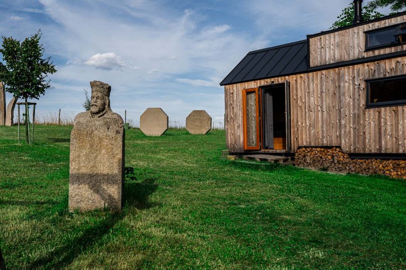 Tiny house je umístěný na výjimečném místě - v sochařském Arboretu nebo - li v magické zahradě.