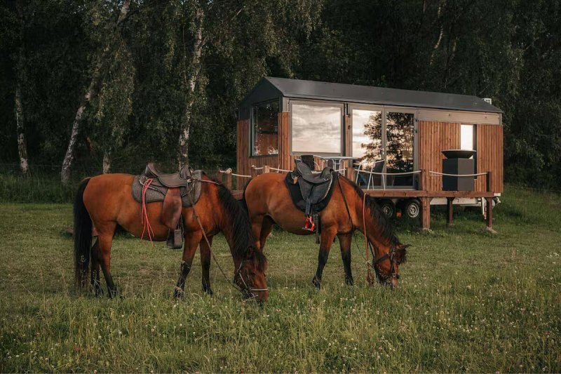 Z jednoho TinyHousu sleduješ východ slunce nad lesy, z jiného západ, který zbarví celé kopce do zlata. Někdy tě přijde pozdravit kráva z místní ekofarmy, jindy ti pod oknem posnídají srnky. A když večer ztichne vítr, uslyšíš jen vzdálené houkání sovy – nebo své vlastní myšlenky, jak konečně zpomalují.