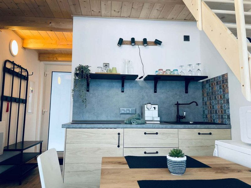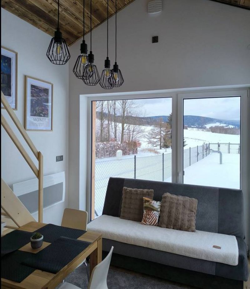 Celková podlahová plocha má 25m²+10m² spací prostor. Kuchyňská linka má indukční desku, mikrovlnnou troubu, lednici), kávovar na kapsle značky ILLY Nespeso, možnost uschování lyží a kol ve společném zahradním domku. Pokud hledáte soukromí a odpočinek od městského ruchu, je to pravé místo pro vaši relaxaci a a načerpání sil. Z domečku jsou přenádherné výhledy na vrcholky okolních hor se sjezdovkami Kunčice, Ramzová, Paprsek s Dalimilovou rozhlednou a samozřejmě Ski areál Kraličák.