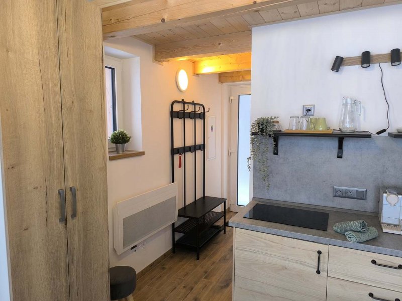 Nabízíme útulný, samostatně stojící Tiny House 35 m2 (z toho 10m2 spací podkroví) k pronájmu, daleko od civilizace, jen 200m od lyžařského střediska SKI Kraličák. Je zasazen do krásné přírody s překrásnými výhledy na okolní krajinu, je určen pro maximálně 3 osoby s vybaveným kuchyňským koutem, TV, WC se sprchovým koutem a propojení Wi - Fi. Možnost uschování lyží a kol v zamykatelném zahradním domku.