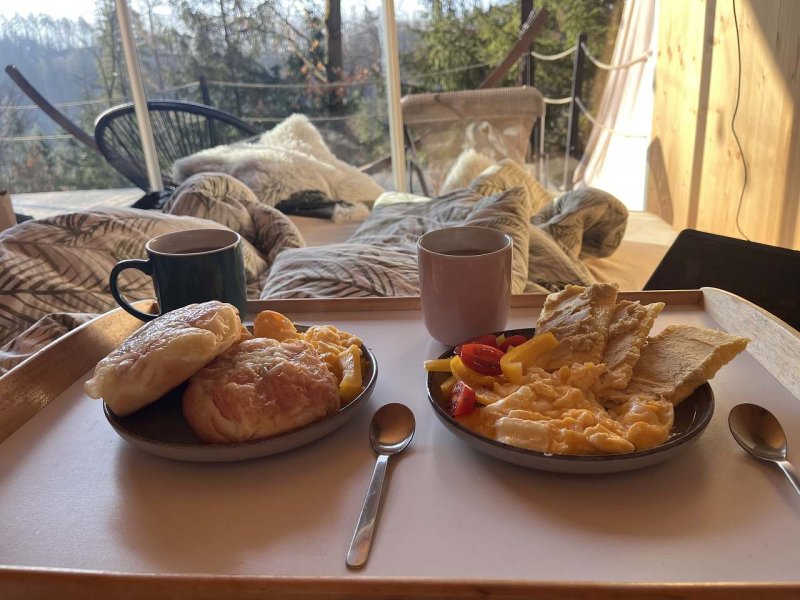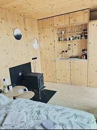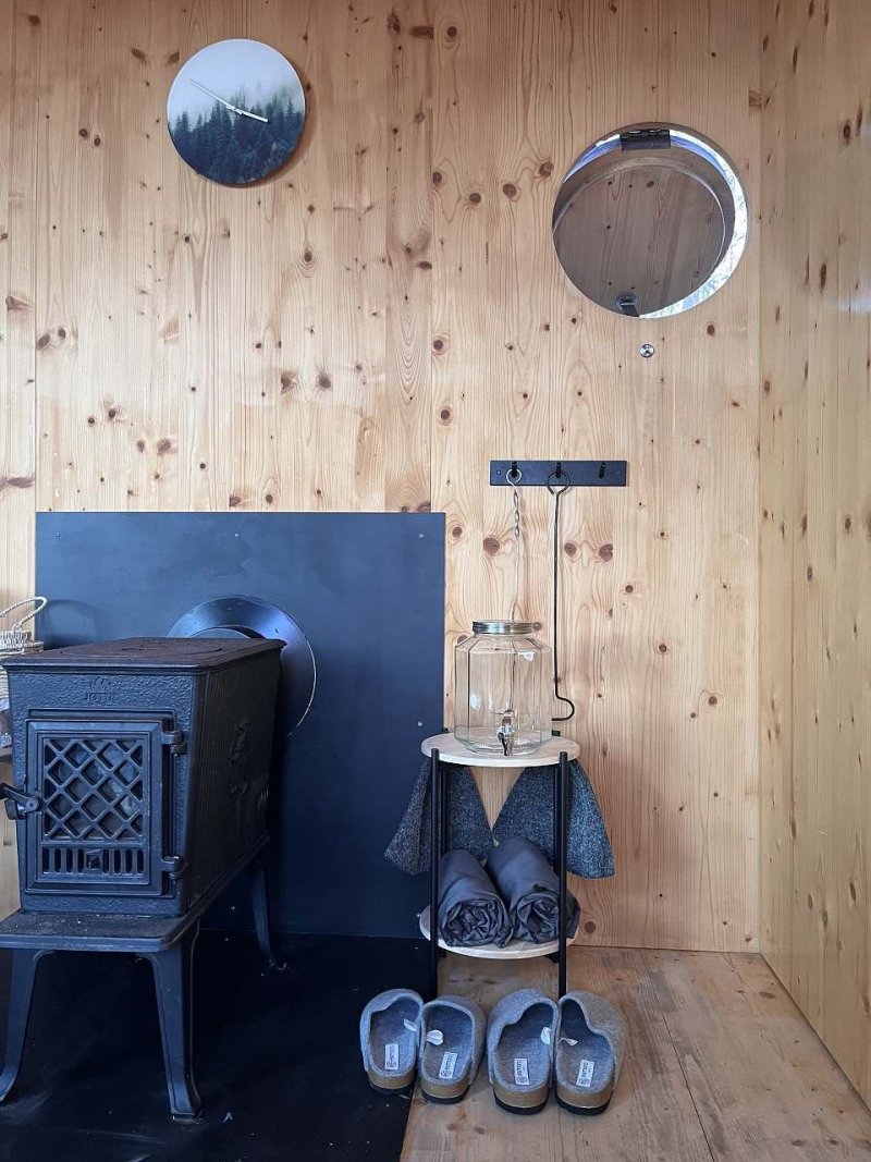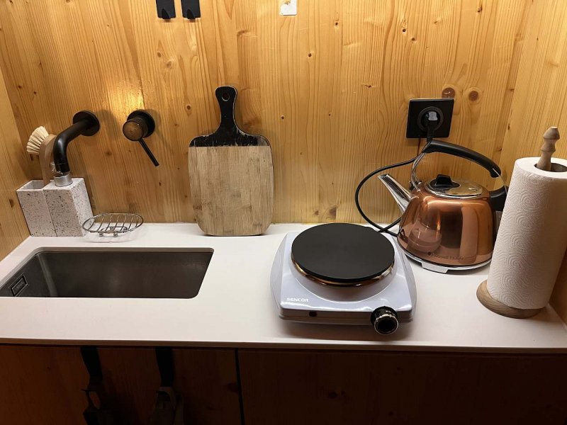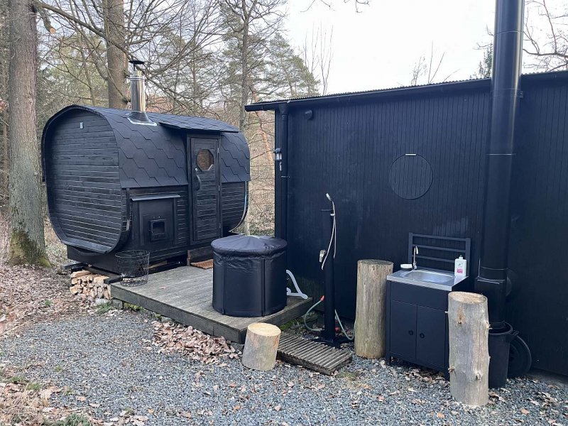 Je to místo, kde nicnedělání není slabost, ale plán. Ideální pro páry nebo jednotlivce, kteří chtějí na chvíli zmizet z ruchu města a být jen spolu nebo sami se sebou. Velká venkovní terasa s lehátky a houpací sítí poskytuje prostor k odpočinku s výhledem do údolí. K dispozici je venkovní ohniště s grilem a dostatek dřeva, kterým lze zatopit i v kamnech uvnitř domku během chladnějších dní a nocí. Pro ještě hlubší relaxaci je připravena soukromá sauna s panoramatickým oknem.