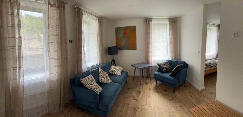 Apartmán v obci Bystré: 2 ložnice, celkem pro 1 až 8 osob. Orientační cena (za apartmán za noc): celoročně 1.500kč.