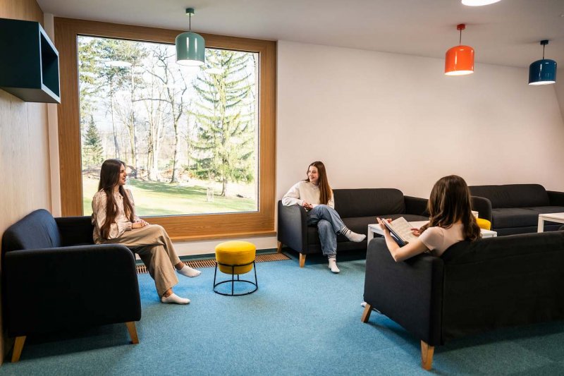 U Blahoslava nabízí ubytování pro skupiny i jednotlivce v Hejnicích. K dispozici jsou vám dvě budovy o celkové kapacitě 85 lůžek ve 27 pokojích, dále jídelna/multifunkční sál pro cca 110 osob, několik společenských místností různých velikostí a kavárna s venkovní terasou. Budovy jsou součástí školního kampusu uprostřed klidného parkového areálu. Místo je ideální pro konání svateb, narozeninových oslav, firemních školení či večírků. Na tyto příležitosti nabízíme také komplexní cateringové služby. Hejnice jsou malebné městečko v podhůří Jizerských hor, jehož okolí přímo zve k odpočinku při procházkách nebo (pro aktivnější z vás) při celé škále letních i zimních sportů. Kromě překrásné přírody není daleko ani k vyloženě městskému vyžití ve 20km vzdáleném Liberci.