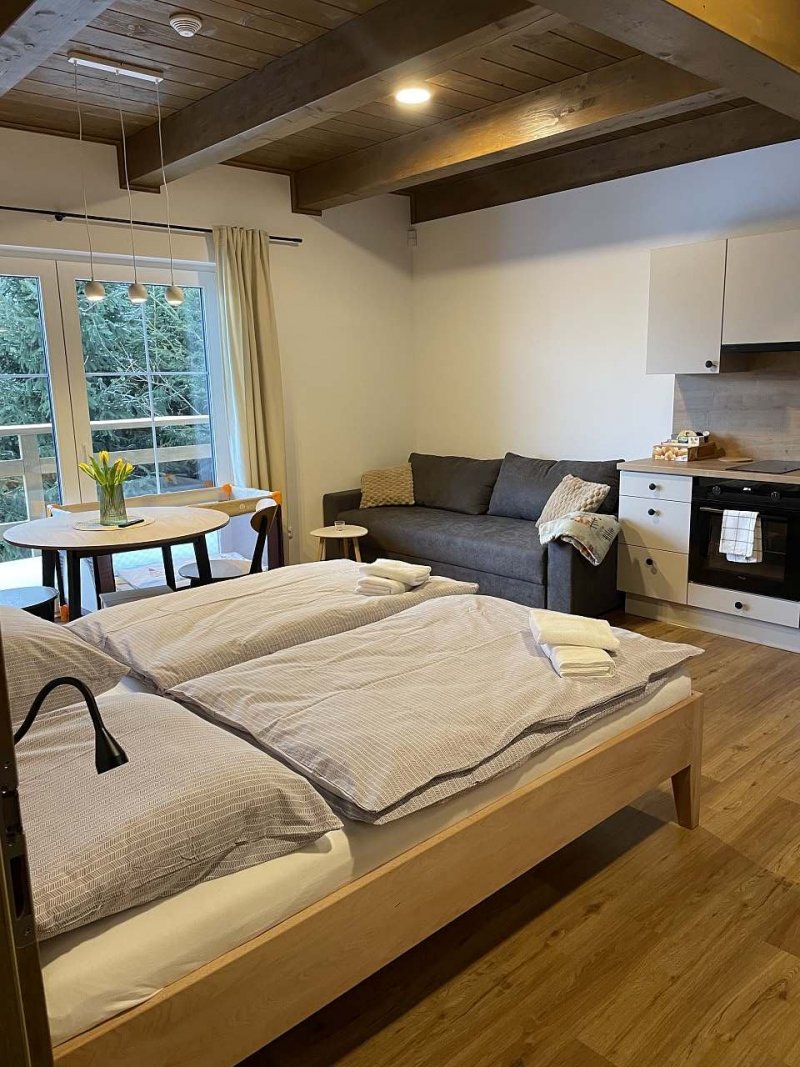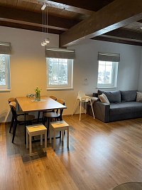 Apartmán v obci Deštné v Orlických horách: 1 ložnice, celkem pro 1 až 4 osoby. Orientační cena (za apartmán za noc): celoročně 1.600kč.