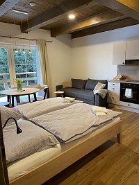 Apartmán v obci Deštné v Orlických horách: 1 ložnice, celkem pro 1 až 4 osoby. Orientační cena (za apartmán za noc): léto 1.500kč, zima 1.900kč.
