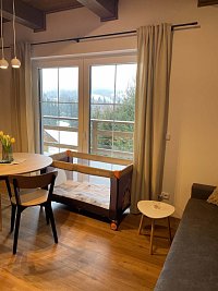 Apartmán v obci Deštné v Orlických horách: 2 ložnice, celkem pro 1 až 6 osob. Orientační cena (apartmán za noc): léto 1.600kč, zima 1.900kč.
