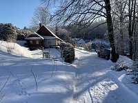 Zrekonstruovaná chalupa nacházející se u lesa na konci cesty, v klidné části obce na travnatém pozemku, který je částečně oplocen živým plotem. Jedná se o dvoupodlažní objekt. V přízemí se nachází předsíň se schodištěm, koupelna s WC a kuchyně sloužící i jako obývací pokoj. V podkroví jsou dvě ložnice. První je průchozí se dvěmi lůžky a koutkem pro děti. Druhá ložnice je vybavena manželskou postelí, dětskou postýlkou a stolkem s TV. Na pozemku za chalupou je ohniště s posezením, dětské pískoviště a houpačka se zkluzavkou. V zimním období je možno k zimním radovánkám využít jak svah za chalupou tak i zamrzlý rybník v lese pod chalupou. Objekt doplňuje v zadní části roubený dřevník, který slouží k úschově kol, lyží, a pod.