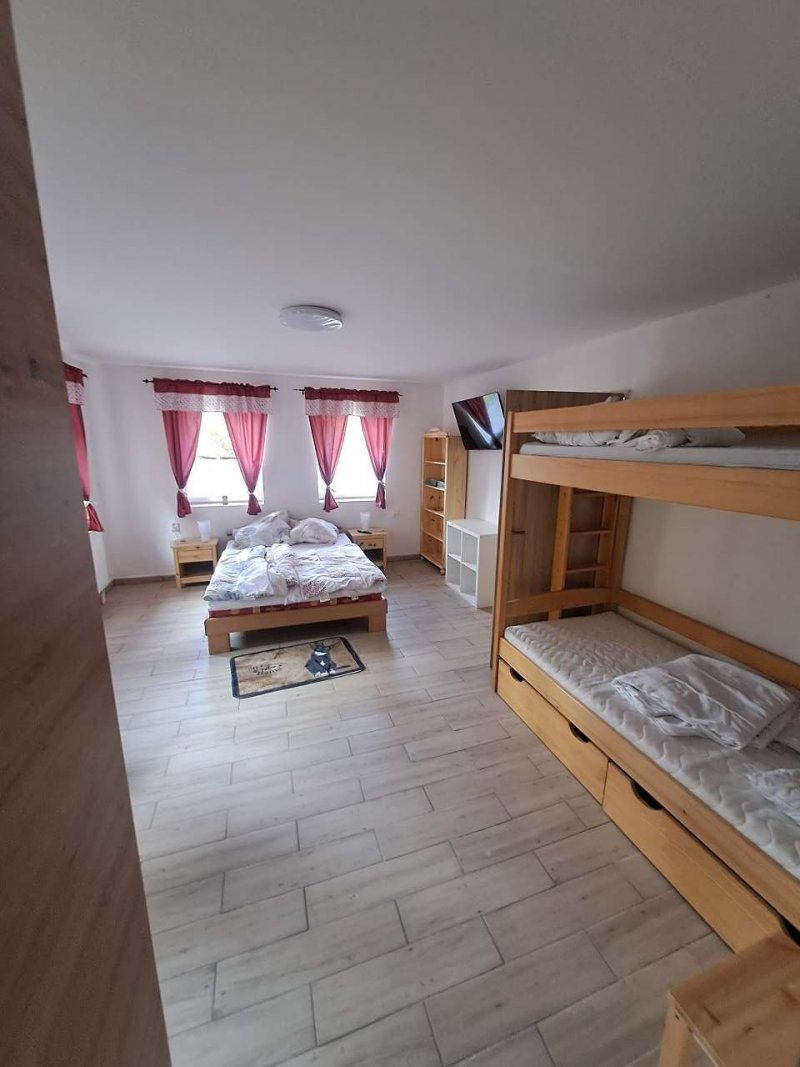 Apartmán v obci Horní Štěpanice: 4 ložnice, celkem pro 2 až 17 osob. Orientační cena (za osobu za noc): celoročně 570kč.