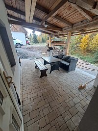 Součásti domu je vytápěná garáž s možností úschovy lyží, kol, kolobežek, kočárků, atd.