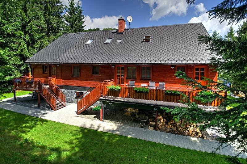 Chata v obci Horní Lipová: 5 ložnic, celkem pro 1 až 22 osob. Orientační cena (za osobu za noc): celoročně 300kč.