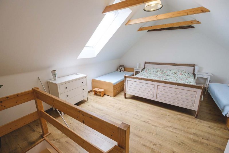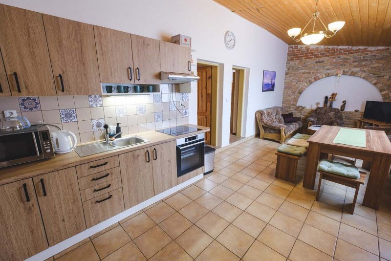 Chalupa v obci Šakvice: 4 ložnice, celkem pro 4 až 8 osob. Orientační cena (za osobu za noc): léto 850kč.