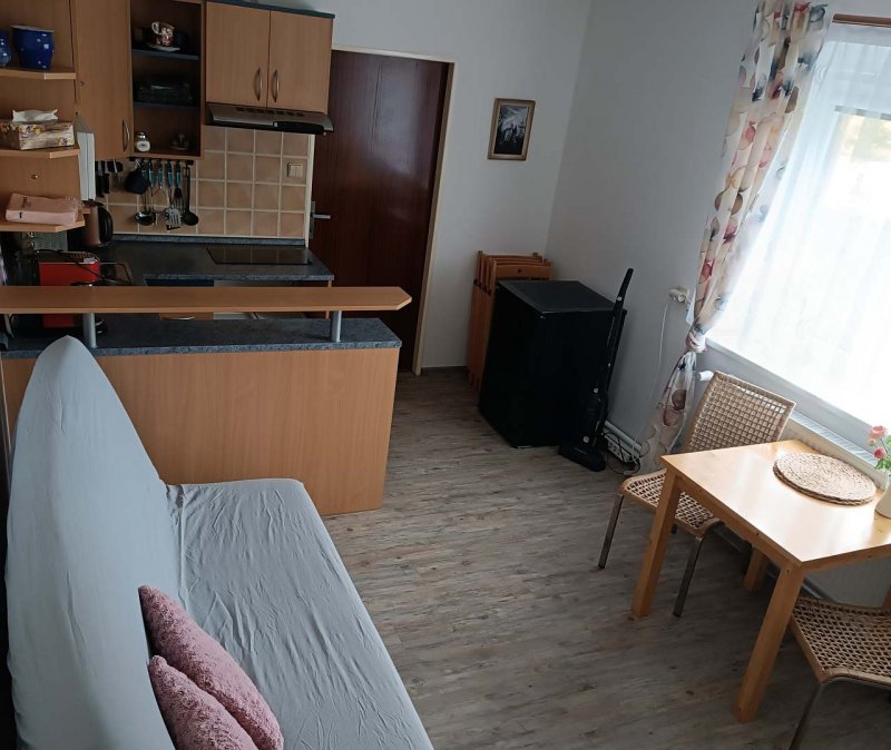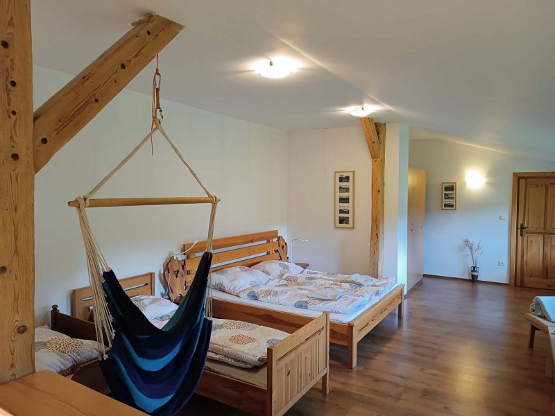 Jednopatrový dům ve slepé ulici, klidné místo, průjezd aut okolo domu minimální, blízko do přírody, do lesa, na nádraží a do centra 1,8 km. K dispozici Vám je apartmán pro maximálně šest osob s vlastním soc. zařízením a se zařízenou kuchyňkou, před domem na zpevněné ploše je možné bezplatné parkování auta.