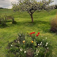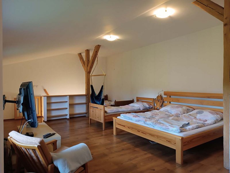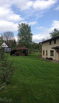 K dispozici je zahrada s trampolínou a prolézačkou, altán s krbem, stolem a lavicemi. K dispozici je za menší poplatek dřevo.