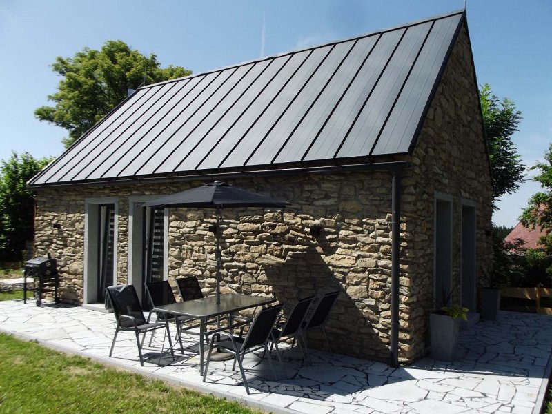 Nově postavený rekreační dům Na Lhotech, vybudovaný na místě staré roubenky s hospodářským zázemím, spojuje tradiční venkovskou atmosféru s moderními prvky, které zajišťují komfort a pohodlí pro všechny návštěvníky. Tato stavba byla navržena s ohledem na původní charakter místa, respektující historii a krajinu, v níž se nachází.