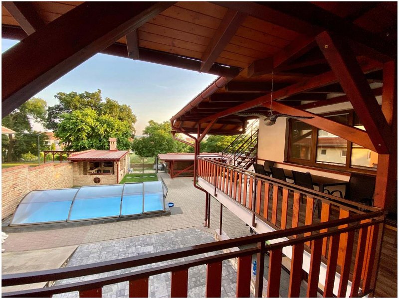 Zastřešený a zapuštěný bazén délka 6,20m, šířka 3,10 m, hloubka 1,4 m. Možno koupání i v dešti. Po dohodě je možné bazén nahřát.