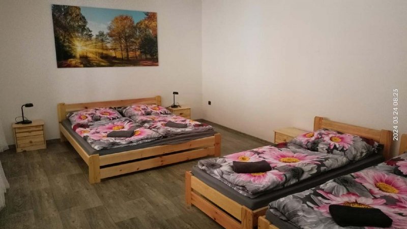 Apartmán v obci Šakvice: 6 ložnic, max. 12 osob. Orientační cena (za osobu za noc): celoročně 580kč.