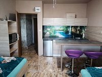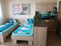 V 1.patře nabízíme nově zřízený apartmán 2+2,zahrnující ložnicí pro 2 osoby a pokoj s kuchyňským koutem pro 2 osoby, sociální zařízení.