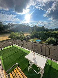 Nově nabízíme ubytování pod lesem na léto, na kraji obce Kouty u Ledče nad Sázavou na Vysočině. Apartmán se nachází v domě v 1.patře a je pro 6 osob, se 3 ložnicemi, obývacím pokojem, vybavenou kuchyní, koupelnou s WC. V obývacím pokoji je TV, krb na přitopení v případě chladnějšího počasí. V celém objektu je WiFi. K apartmánu patří balkon, zahrada s venkovním posezením s krbem a bazénem a houpací síť, kde můžete relaxovat. Apartmán se nachází na oploceném pozemku, kolem kterého jsou lesy a louky. V apartmánu budete sami bez přítomnosti majitele. Pejsci jsou vítáni. Upřednostňujeme týdenní pobyty.