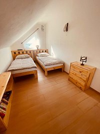 Chata v obci Kamenná Lhota: 3 ložnice, celkem pro 1 až 8 osob. Orientační cena (chata za týden): léto 8.000kč.