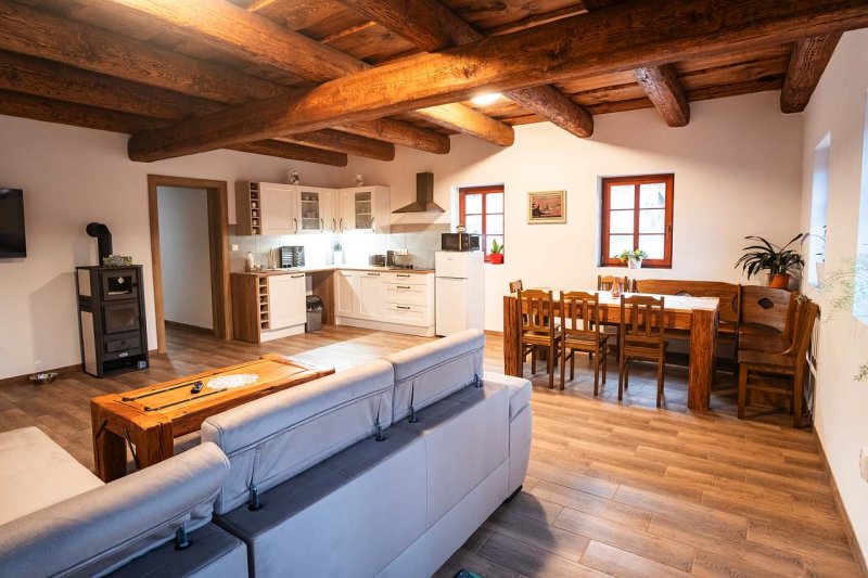Chalupa v obci Martínkovice: 4 ložnice, max. 8 osob. Orientační cena (chalupa za týden): léto 19.990kč, zima 18.500kč.