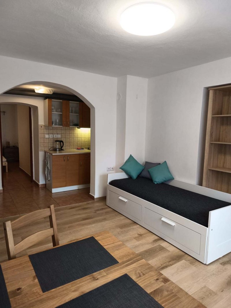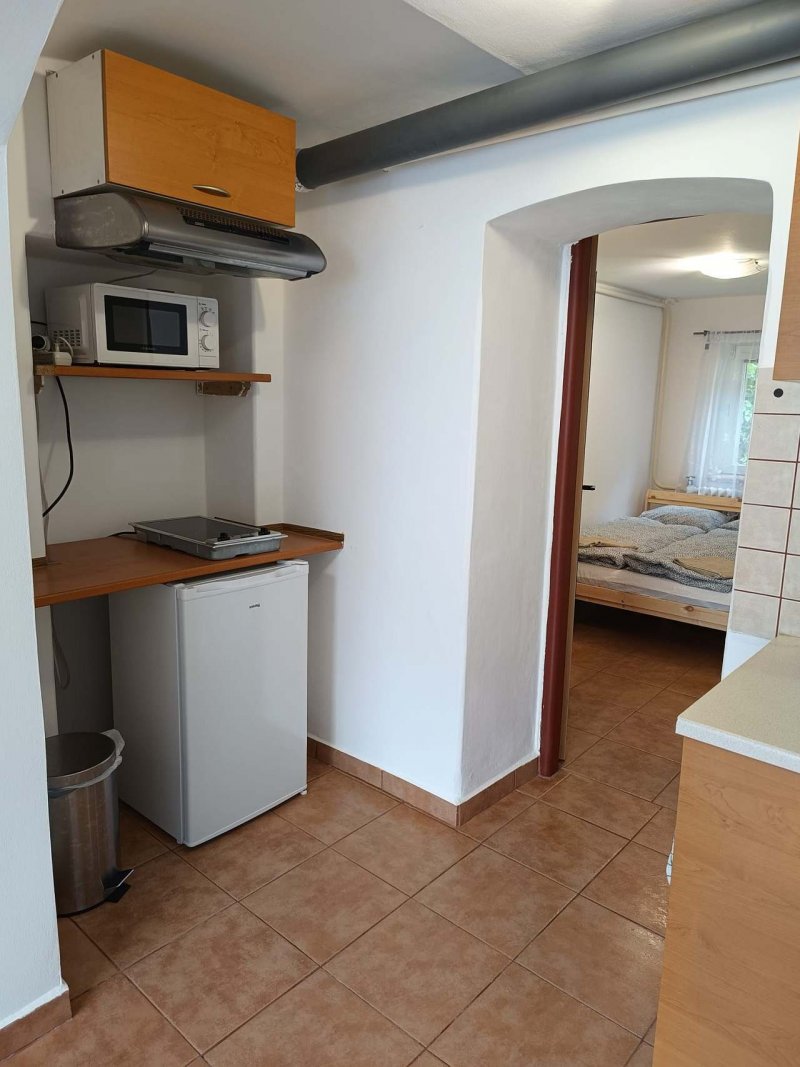 Nachází se v části rodinného domu s vlastním vstupem. Součástí je ložnice, koupelna, obývací pokoj a kuchyň v níž je lednička, dvouplotýnkový vařič a digestoř. Pro hosty je zde manželská postel a rozkládací postel pro 2.