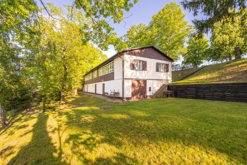 Chata v obci Pňovany: 6 ložnic, max. 18 osob. Orientační cena (chata za noc): celoročně 2.240kč.