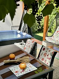 Součástí je zastřešená terasa s venkovním grilem a vířivkou do které vstupujete přímo z obytného prostoru domu.