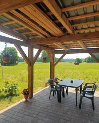 Možnost posezení pod pergolou s krásným výhledem do přírody, kde si můžete něco dobrého ugrilovat, nebo jenom tak relaxovat.