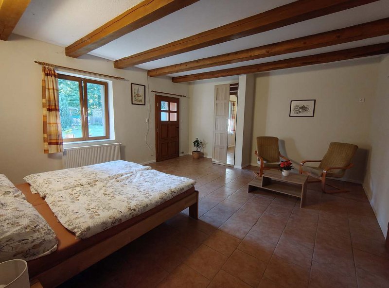 Chalupa v obci Chlum u Třeboně - Mirochov: 4 ložnice, max. 10 osob. Orientační cena (za apartmán za týden): léto 25.000kč, zima 19.000kč.