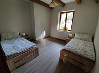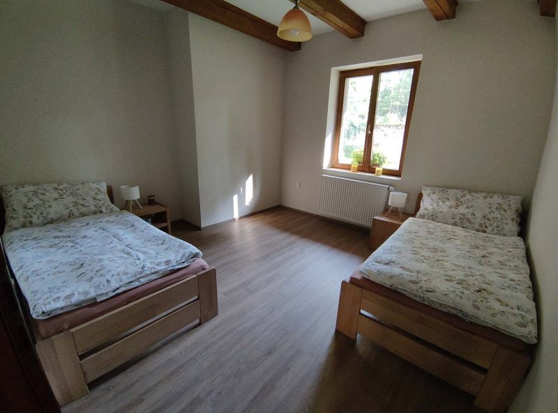 Chalupa v obci Lutová: 7 ložnic, celkem pro 2 až 26 osob. Orientační cena (za osobu za noc): celoročně 500kč.