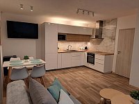 Apartmán v obci Milovice: 2 ložnice, max. 6 osob. Orientační cena (apartmán za noc): léto 2.200kč, zima 2.500kč.