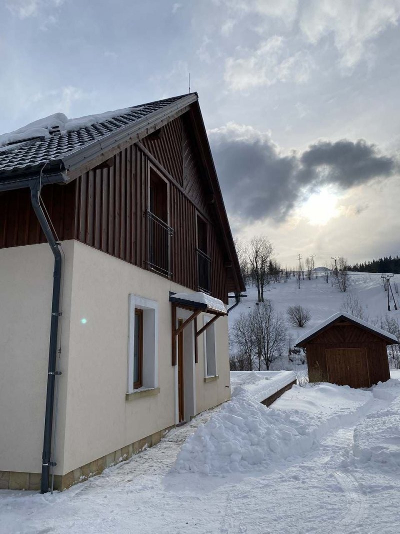 Stylová novostavba Víkendový dům se nachází v oblíbeném Bedřichově v Jizerských horách.