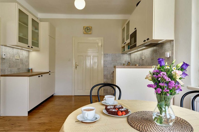 Dům má úžasnou atmosféru starých časů, velká okna plná slunce po celý den.