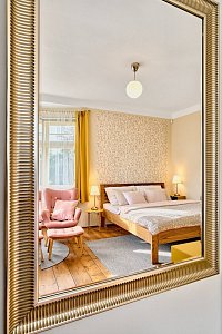 Apartmán v obci Radňovice: 5 ložnic, celkem pro 2 až 15 osob. Orientační cena (za osobu za noc): celoročně 400kč.